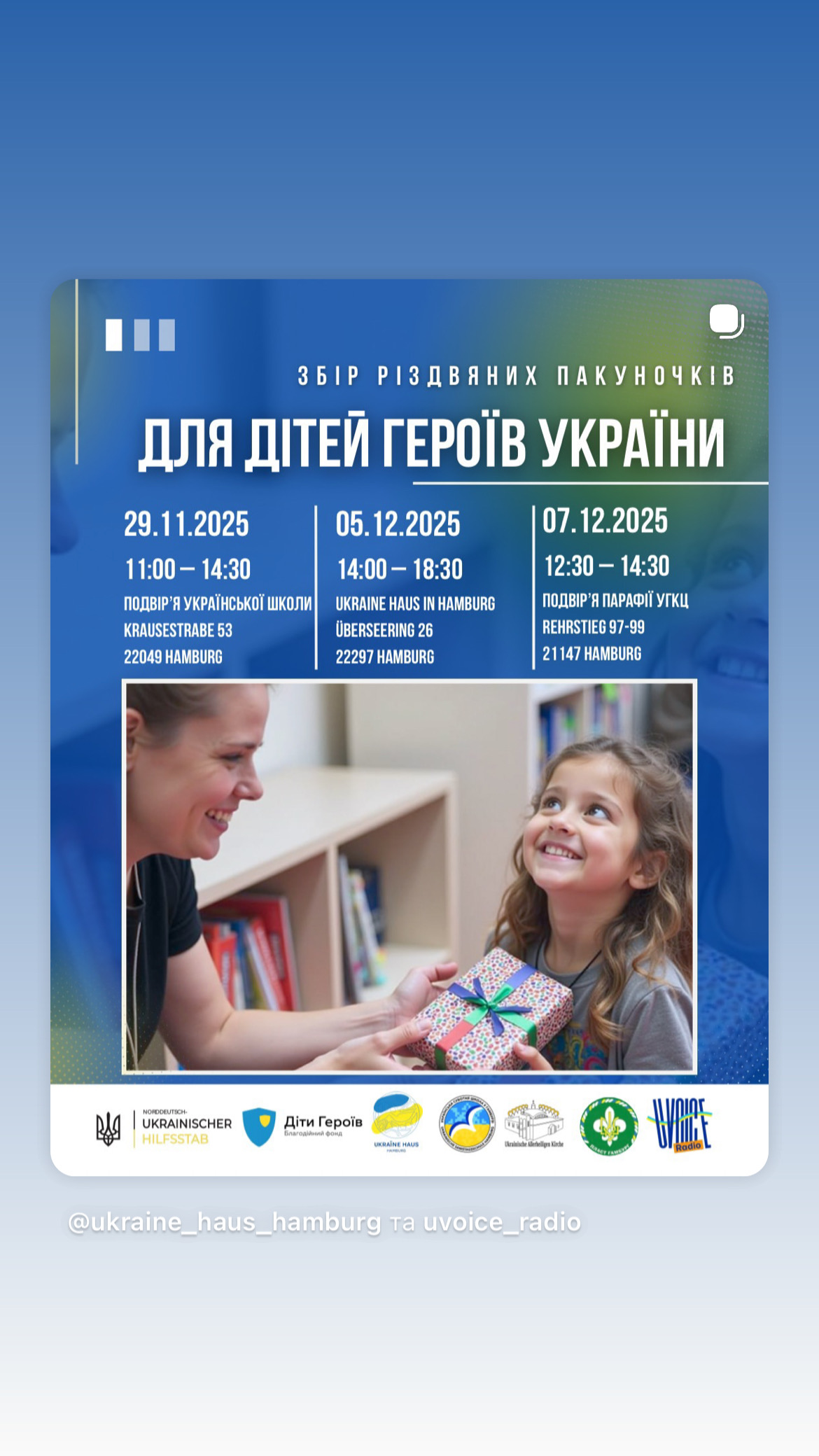 Ukrainischer Hilfsstab / Ereignisse / Weihnachtsaktion für Kinder, die heute am meisten Wärme brauchen.
